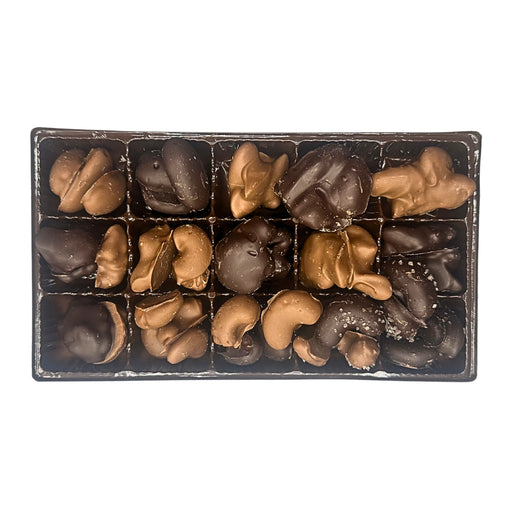 Original price $15.50 - Original price $31.00Original price$15.50 - $31.00$15.50 - $31.00Current price $15.50| /An assortment of gourmet dark chocolate coated almonds, jumbo salted cashews, peanuts, pecans, and walnuts, aesthetically packaged in a signature B...