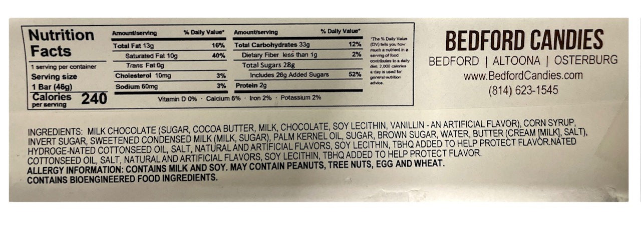 Find our Milk Chocolate Caramel Candy Bar at our stores in Bedford and Altoona. Alternatively, you can conveniently order online for delivery to your doorstep.