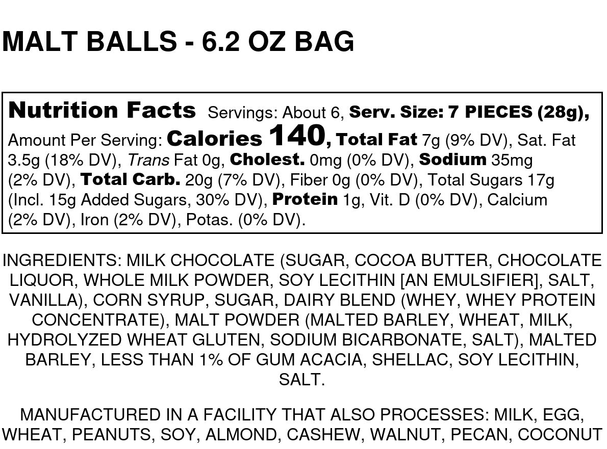 Our snack-size bag of large milk chocolate-covered malt balls offers a delightful combination of creamy chocolate and crunchy centers. Bedford Candies handcrafts these old-fashioned treats using the finest ingredients, ensuring each bite is simply irresistible.