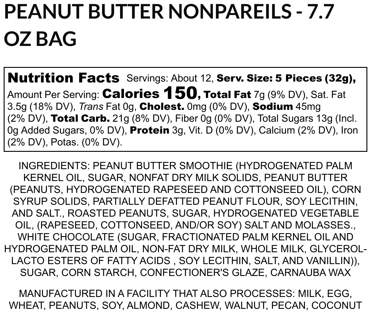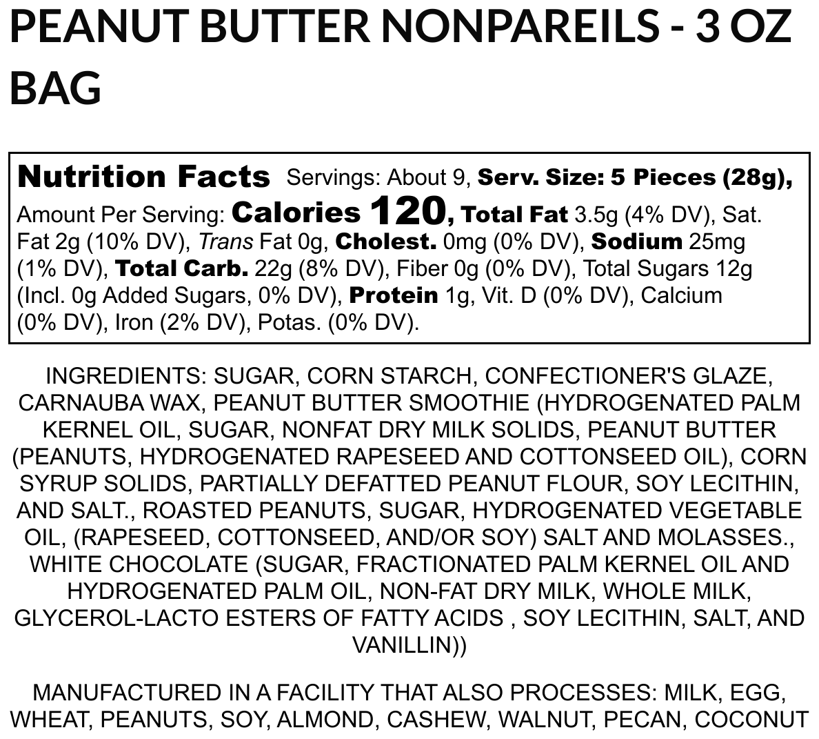 Experience the simple yet unforgettable delight of nonpareils. Each nonpareil features a drop of creamy chocolate or peanut butter smoothie center coated in nonpareil seeds, creating a unique and delicious treat.