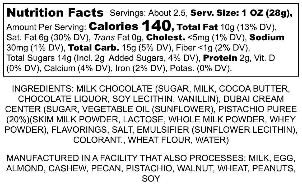 Dubai Chocolate Bar - Small 2.25oz