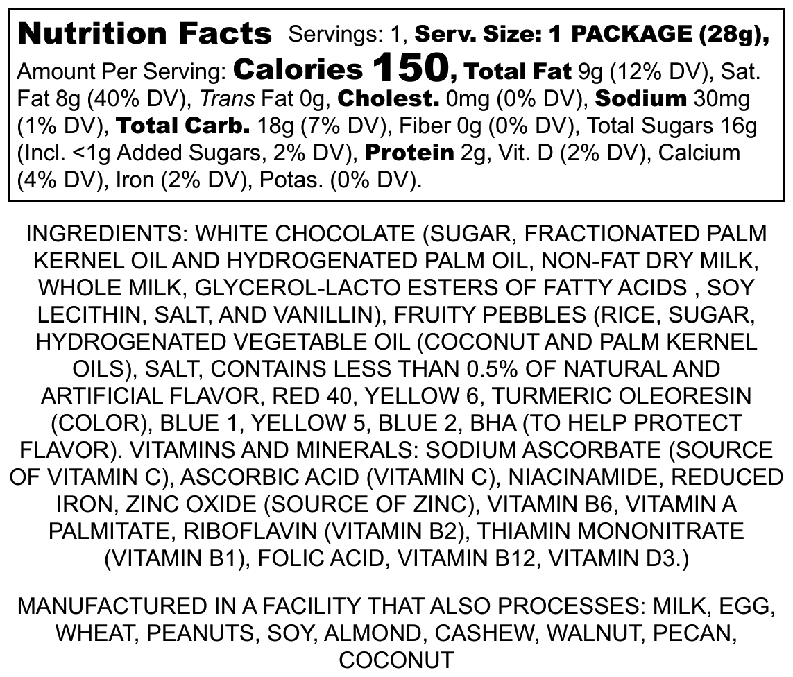 EASTER RABBIT WITH PACK MOLDED WITH WHITE CHOCOLATE MIXED WITH FRUITY PEBBLE CEREAL. 1 OZ