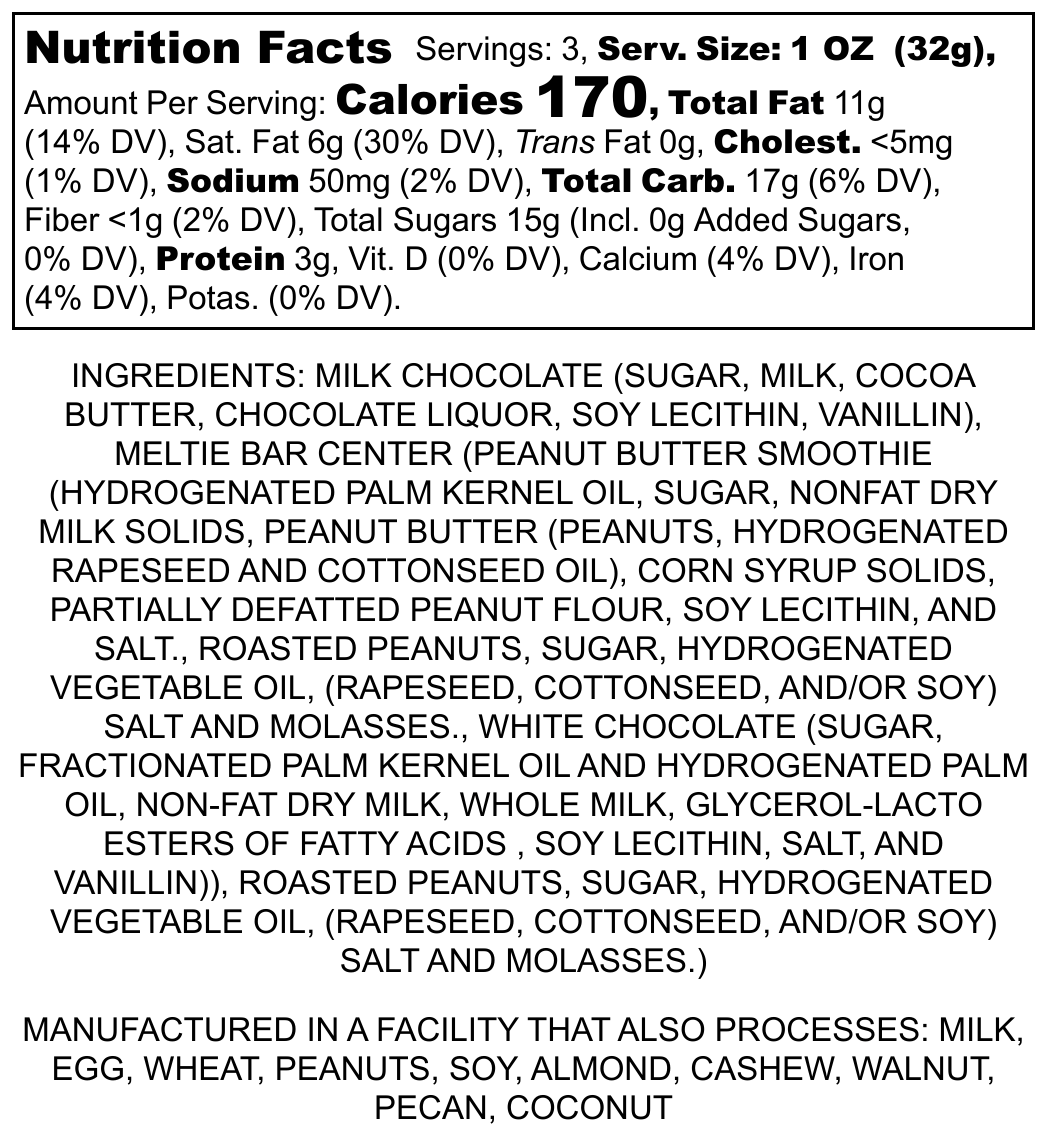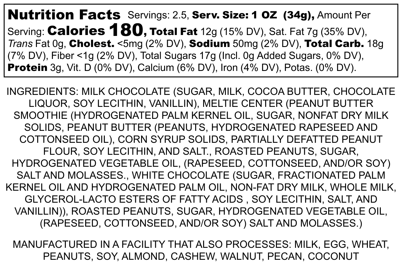 OUR BEST-SELLING PEANUT BUTTER MELTIES, NOW IN EGG FORM. SMOOTH, CREAMY PEANUT BUTTER MELTIE CENTER DIPPED IN MILK CHOCOLATE AND WRAPPED IN COLORFUL FOILS. YOUR CHOICE OF A SINGLE LARGE 2.5-OUNCE EGG OR A 2 PACK OF SMALL WRAPPED EGGS (3-OUNCE).