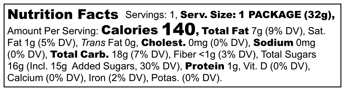 MANUFACTURED IN A FACILITY THAT ALSO PROCESSES: MILK, EGG, WHEAT, PEANUTS, SOY, ALMOND, CASHEW, WALNUT, PECAN, COCONUT, PISTACHIOS