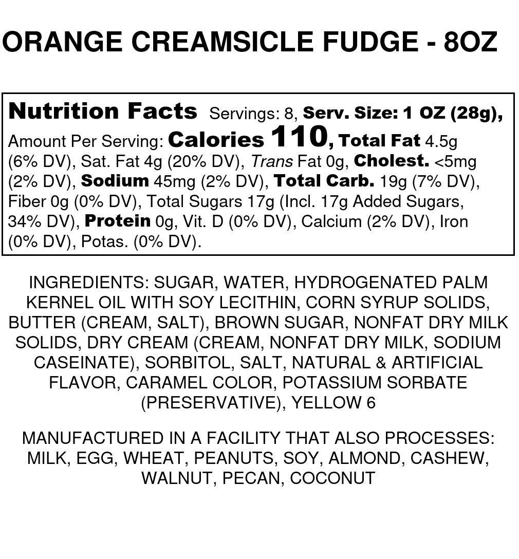If you're craving a sweet and citrusy treat, you can't go wrong with half a pound of Bedford Candies fudge. We make our fudge in small batches so that we can monitor the quality and appearance. The result is consistently delicious creamsicle fudge, batch after batch. The swirled classic vanilla and tangy orange melt in your mouth softly, letting you absorb all the rich flavor and leaving you wanting more.