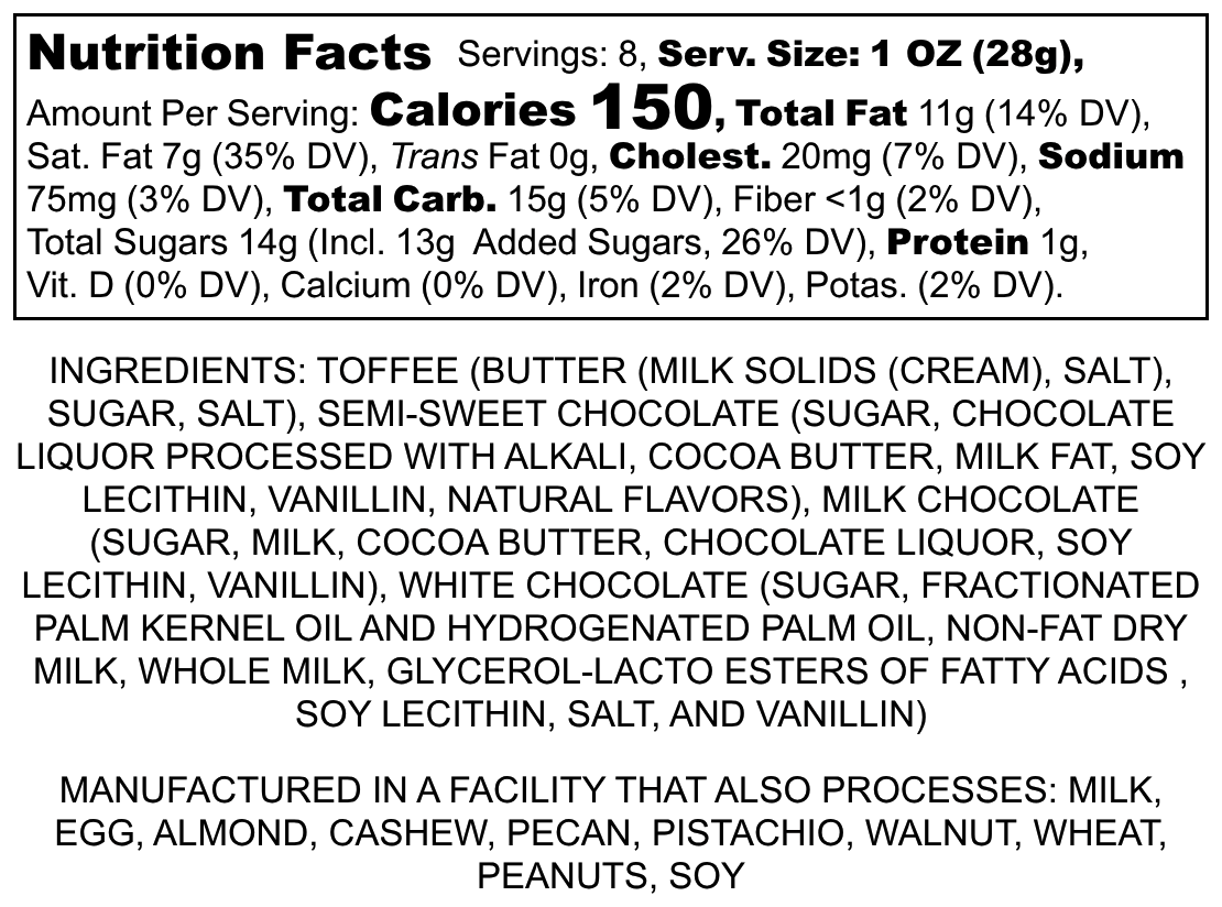 Indulge in TOFFEE BARK, where every bite delivers a delightful blend of sweet, crunchy, and buttery toffee paired with a rich, smooth layer of premium chocolate. This irresistible treat offers a satisfying texture contrast and a luxurious flavor experience that keeps you coming back for more. Perfect for sharing or savoring on your own, TOFFEE BARK elevates any moment with its decadent taste and handcrafted quality.