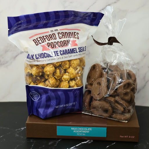 Original price $21.00 - Original price $21.00Original price$21.00$21.00 - $21.00Current price $21.00| /Experience the perfect gift with our Classic Gift Set! This collection includes gourmet popcorn, chocolate-covered pretzels, and a rich chocolate c...