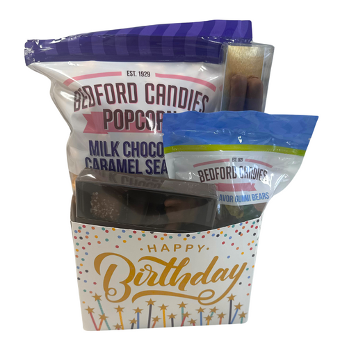 Original price $30.00 - Original price $30.00Original price$30.00$30.00 - $30.00Current price $30.00| /The sweetest Birthday Gift! One Happy Birthday Fold up Gift Set with a Medium Bag of Popcorn, Box of Chocolates, Bag of Gummies, and Chocolate cove...