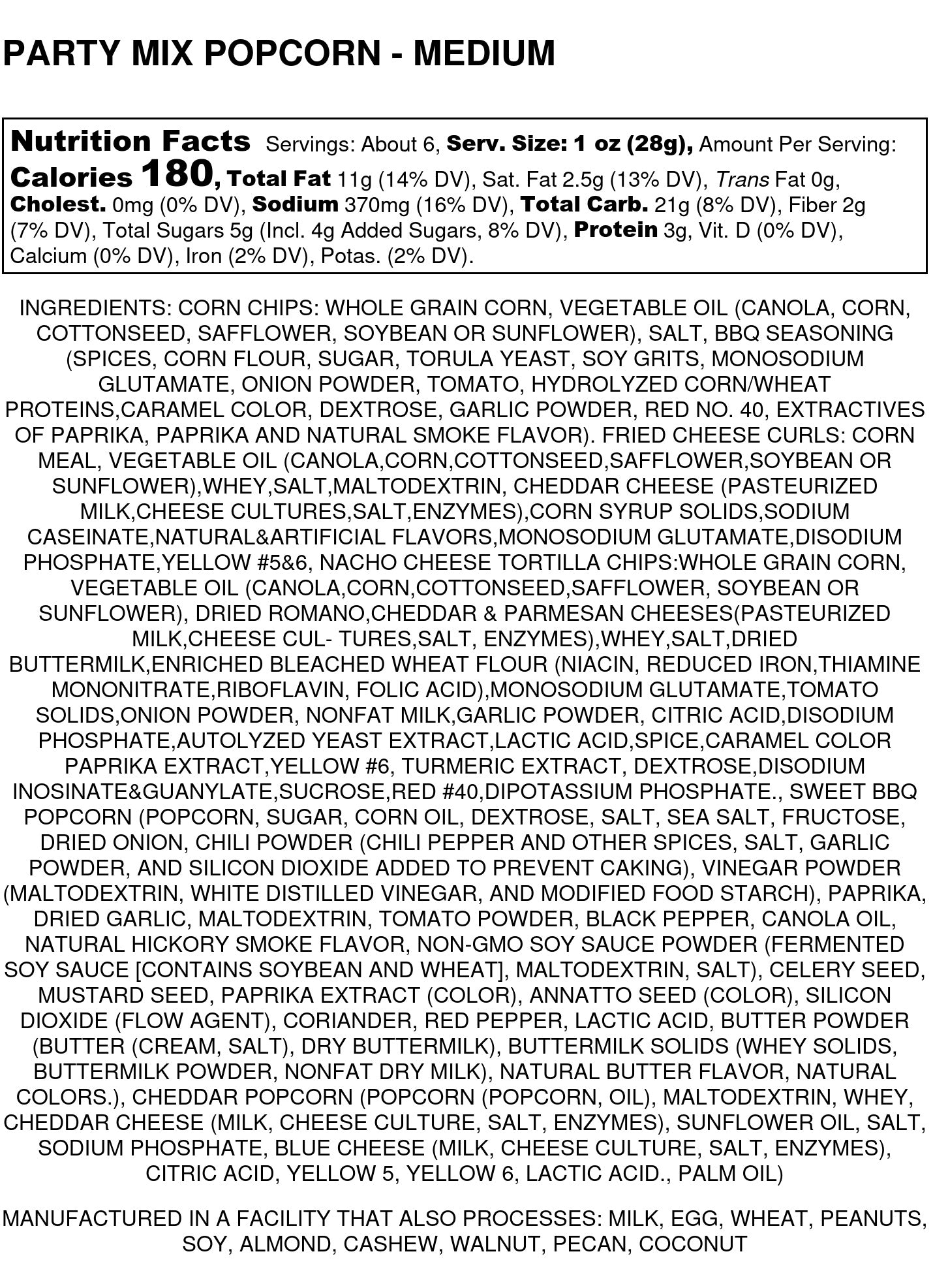 Enjoy an irresistible blend of sweet gourmet BBQ popcorn and rich cheddar cheese popcorn, combined with a festive party mix featuring nachos, cheese puffs, crunchy pretzels, BBQ corn chips, and Bugle chips. This delicious assortment is perfect for any celebration or snack time.