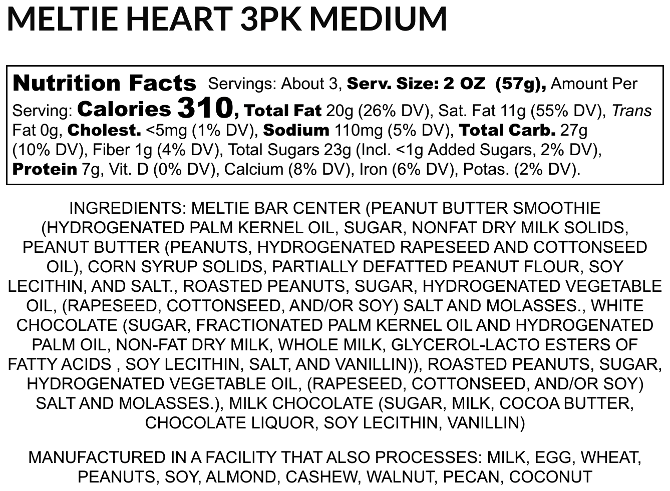 Valentine - Peanut Butter Meltie Hearts - 3 Pack Medium