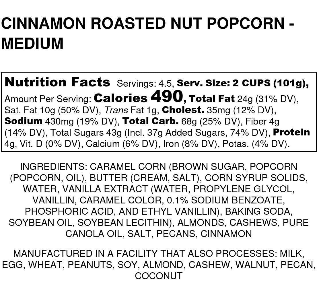 Try a handful of our cinnamon nutcracker gourmet popcorn today. It's an irresistible combination of fluffy popcorn kernels coated with a crunchy, sweet cinnamon-caramel topping mixed with almonds, cashews and pecans.