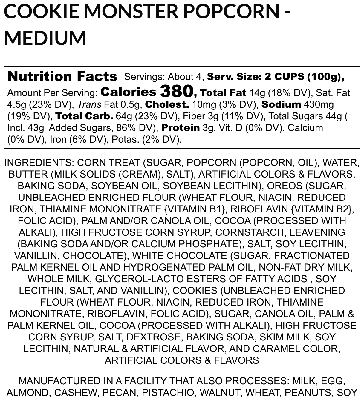 Indulge your sweet tooth with Cookie Monster Gourmet Popcorn, a vibrant blue treat bursting with birthday cake flavor. This delectable popcorn is generously sprinkled with crunchy Oreo cookie pieces and Chips Ahoy chocolate chip cookie crumbles, creating a perfect balance of texture and taste. To top it all off, itβs drizzled with smooth white chocolate, adding a creamy sweetness that will keep you coming back for more. Perfect for parties, gifting, or satisfying your snack cravings, this irresistibly fun and flavorful popcorn promises a delightful experience in every bite.
